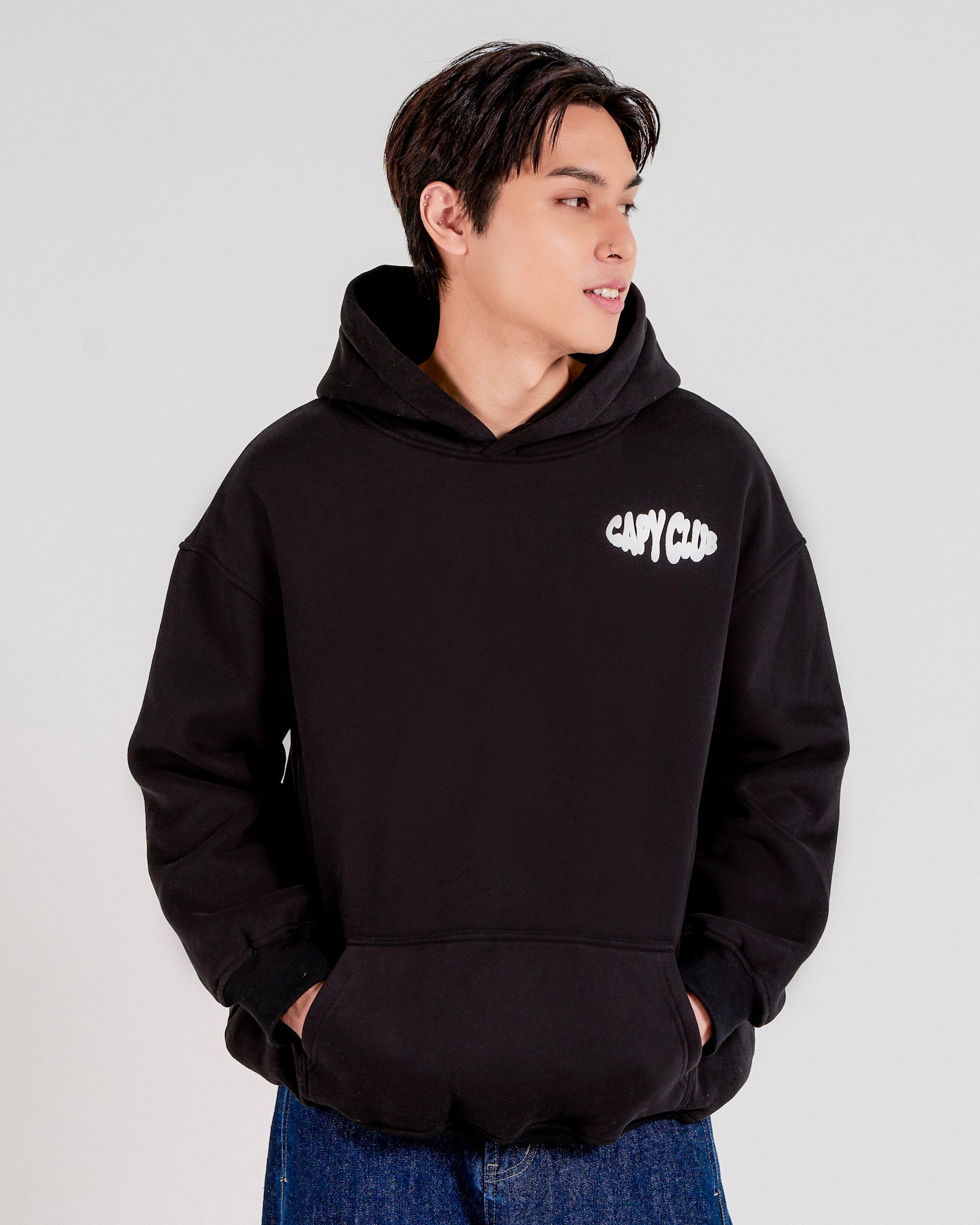 - Oversized hood & kangaroo pocket