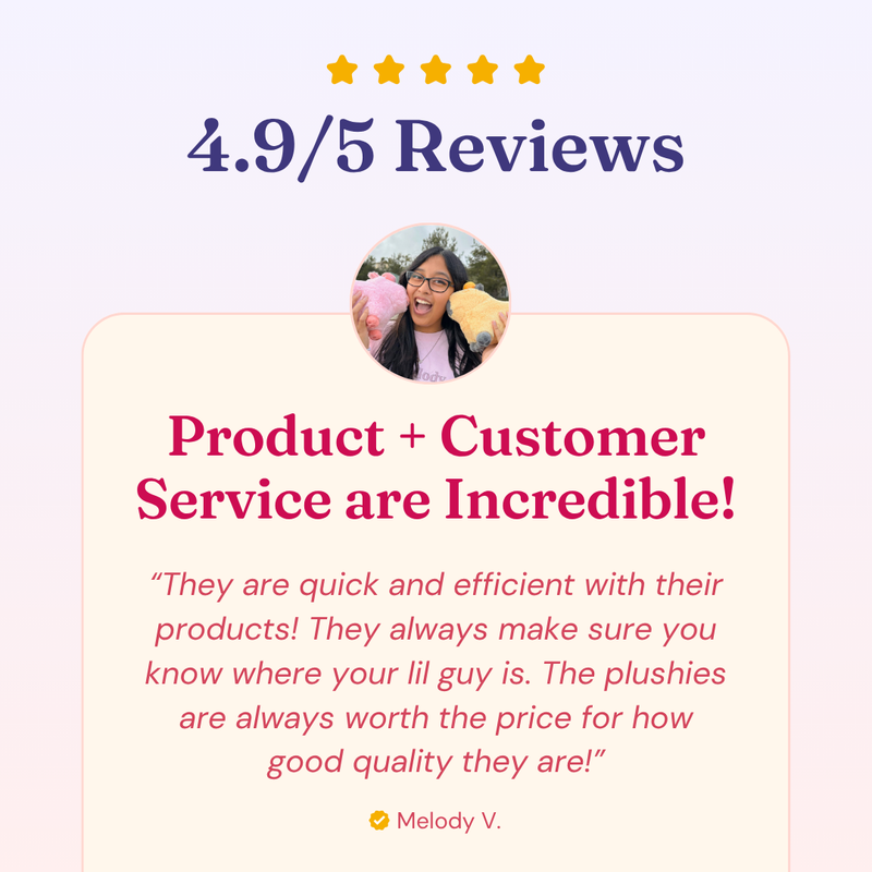 Enjoy hassle-free return if you are not satisfied with our plushies!